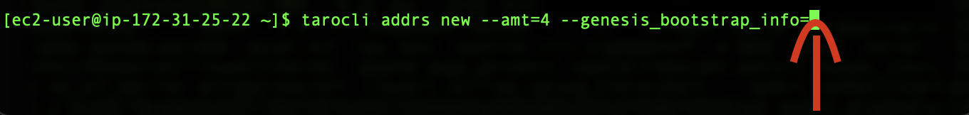 Paste your genesis asset ID as an input of your tarocli addrs new command.