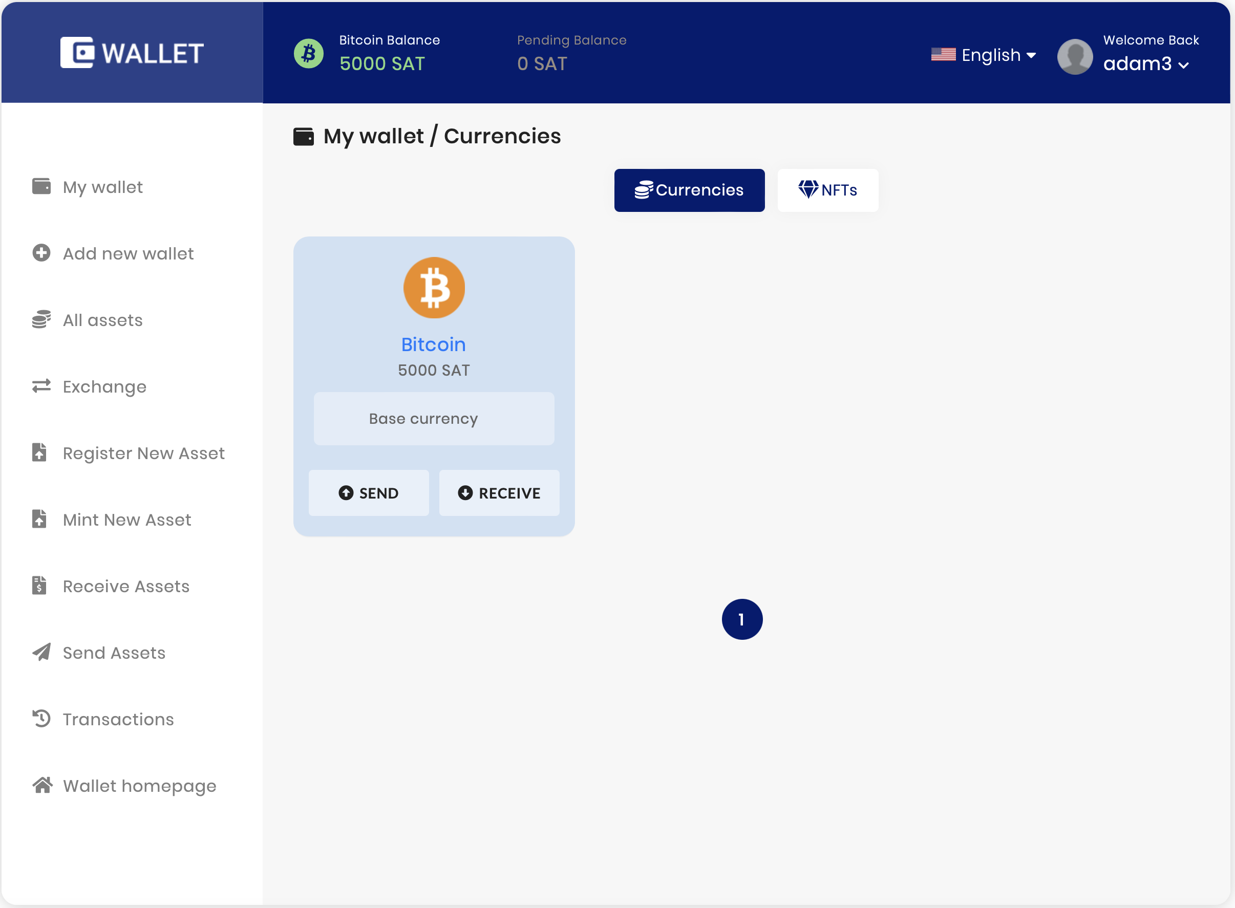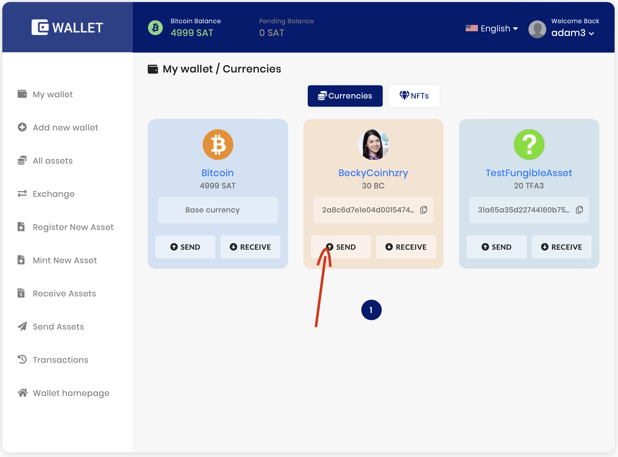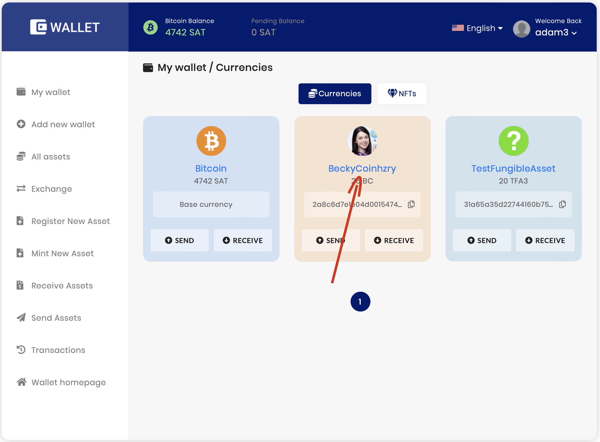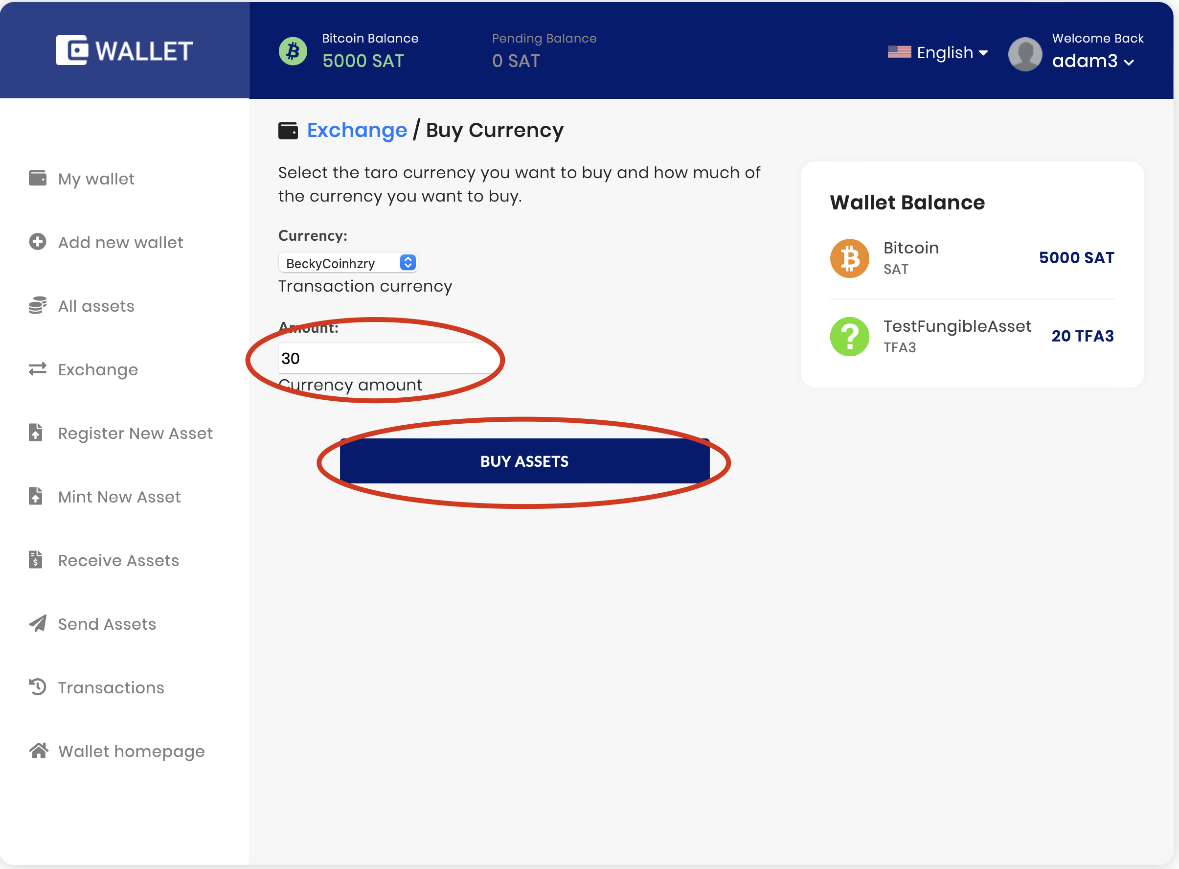 Use the exchange functionality to obtain your first Taproot assets in the wallet.