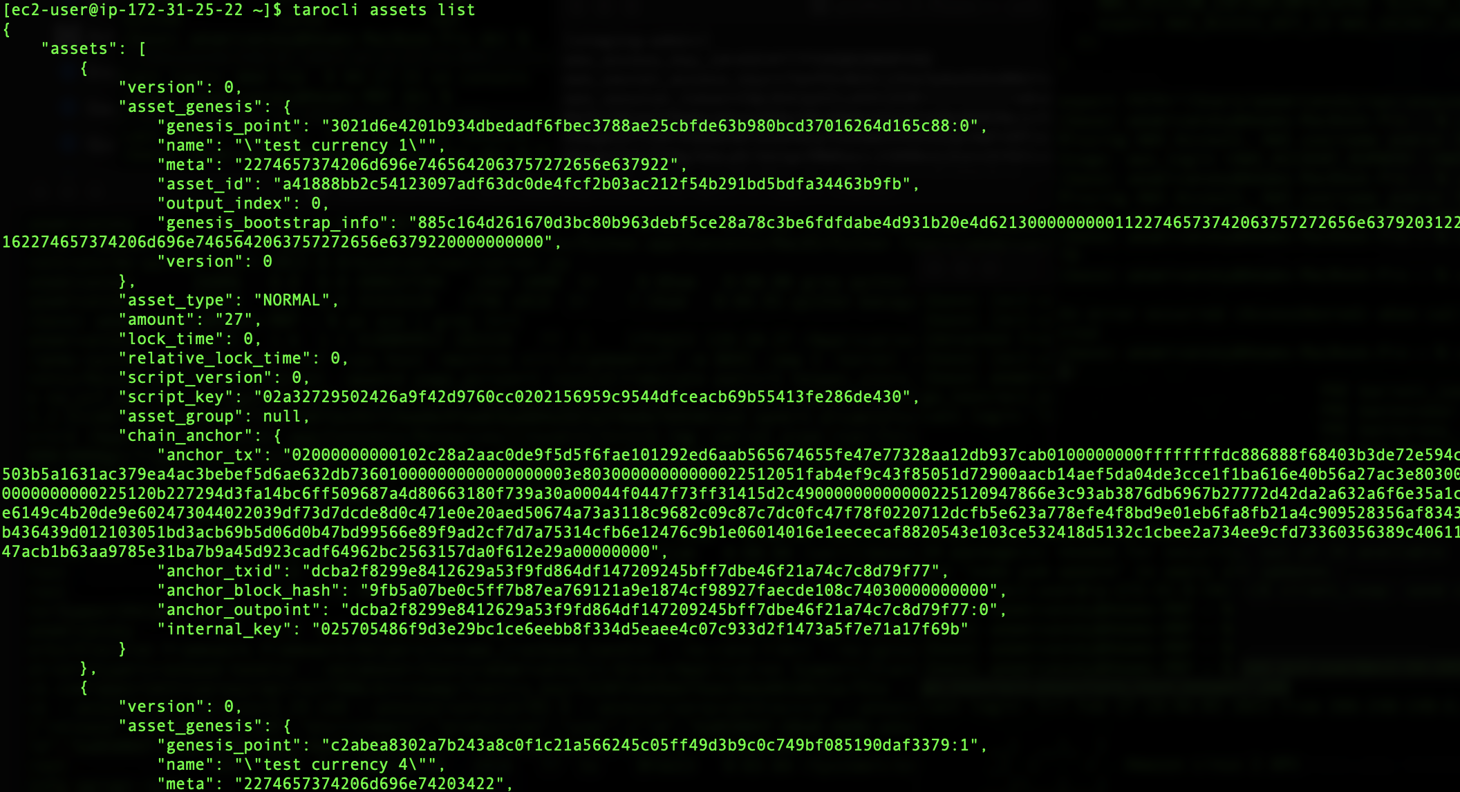 <figure><img src="https://2030877470-files.gitbook.io/~/files/v0/b/gitbook-x-prod.appspot.com/o/spaces%2FYPCqjMJwBzaMKLGWDjCH%2Fuploads%2FXCywaf9VfZYvCYLyoXUJ%2Fimage.png?alt=media&#x26;token=2d388a68-6702-480e-824b-f95dc424103f" alt=""><figcaption><p>tarocli assets list output</p></figcaption></figure>
