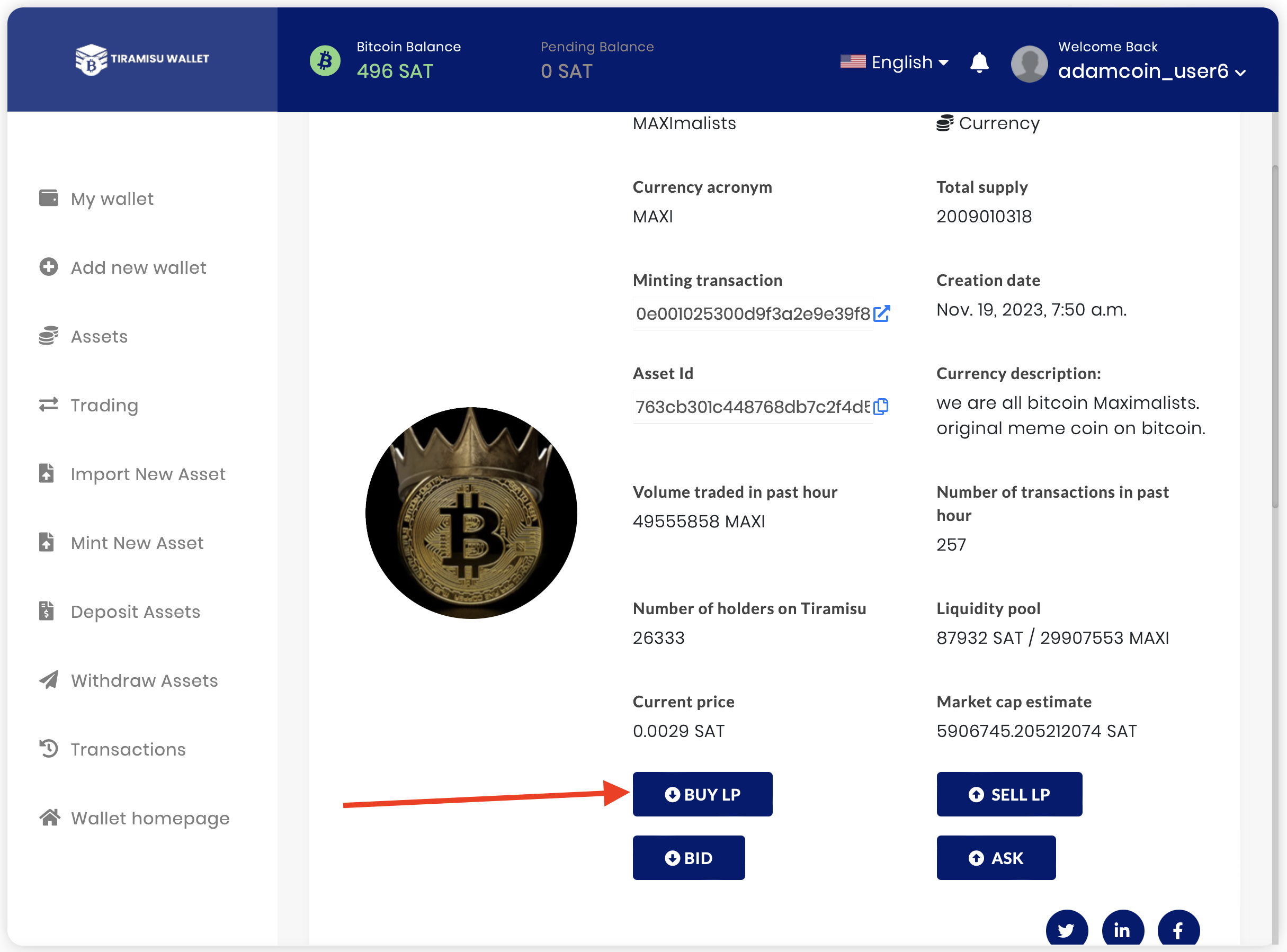 Then scroll lower and press [buy LP](https://mainnet.tiramisuwallet.com/walletapp/buy_taro_asset/?currency=MAXImalists) button.
