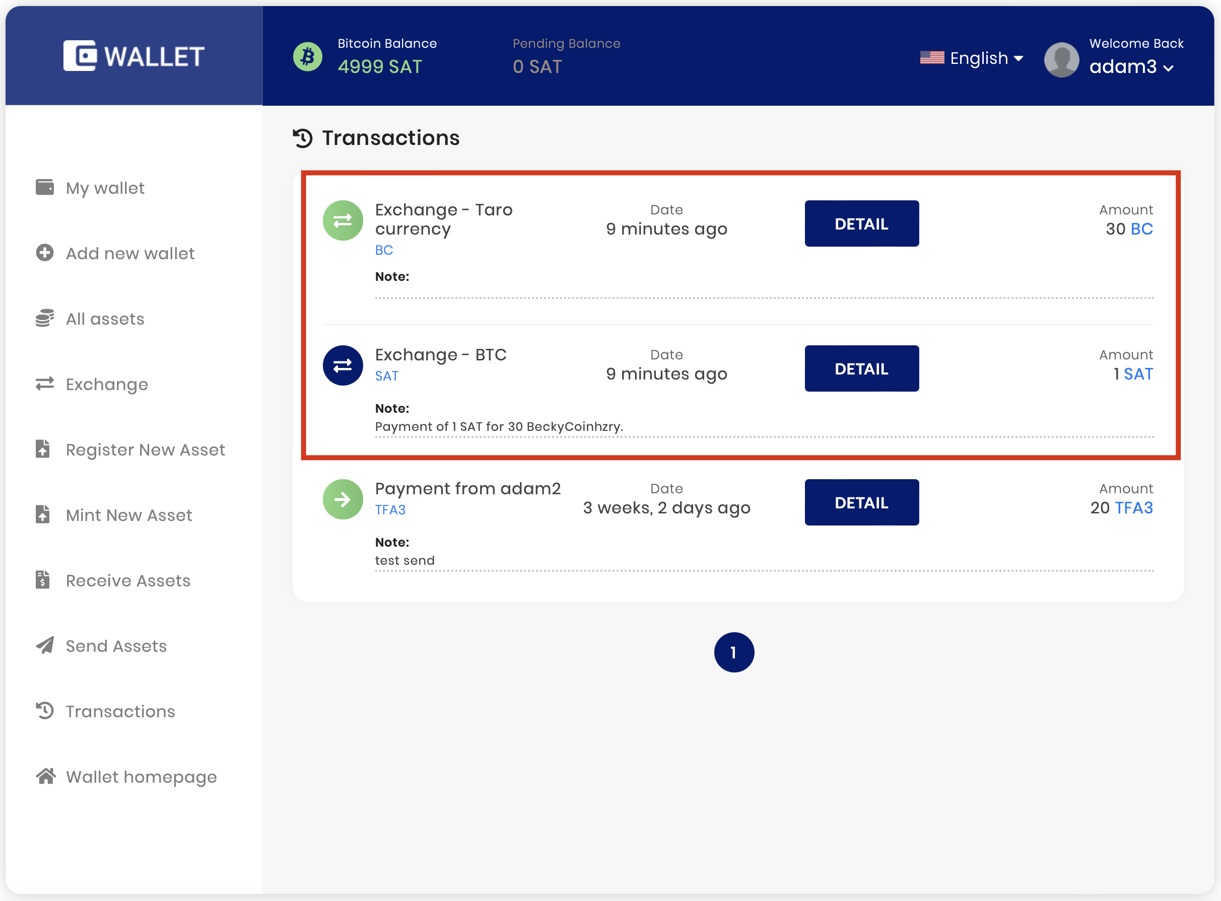You will now see two additional transaction representing the outgoing Bitcoin and he incomming currency.